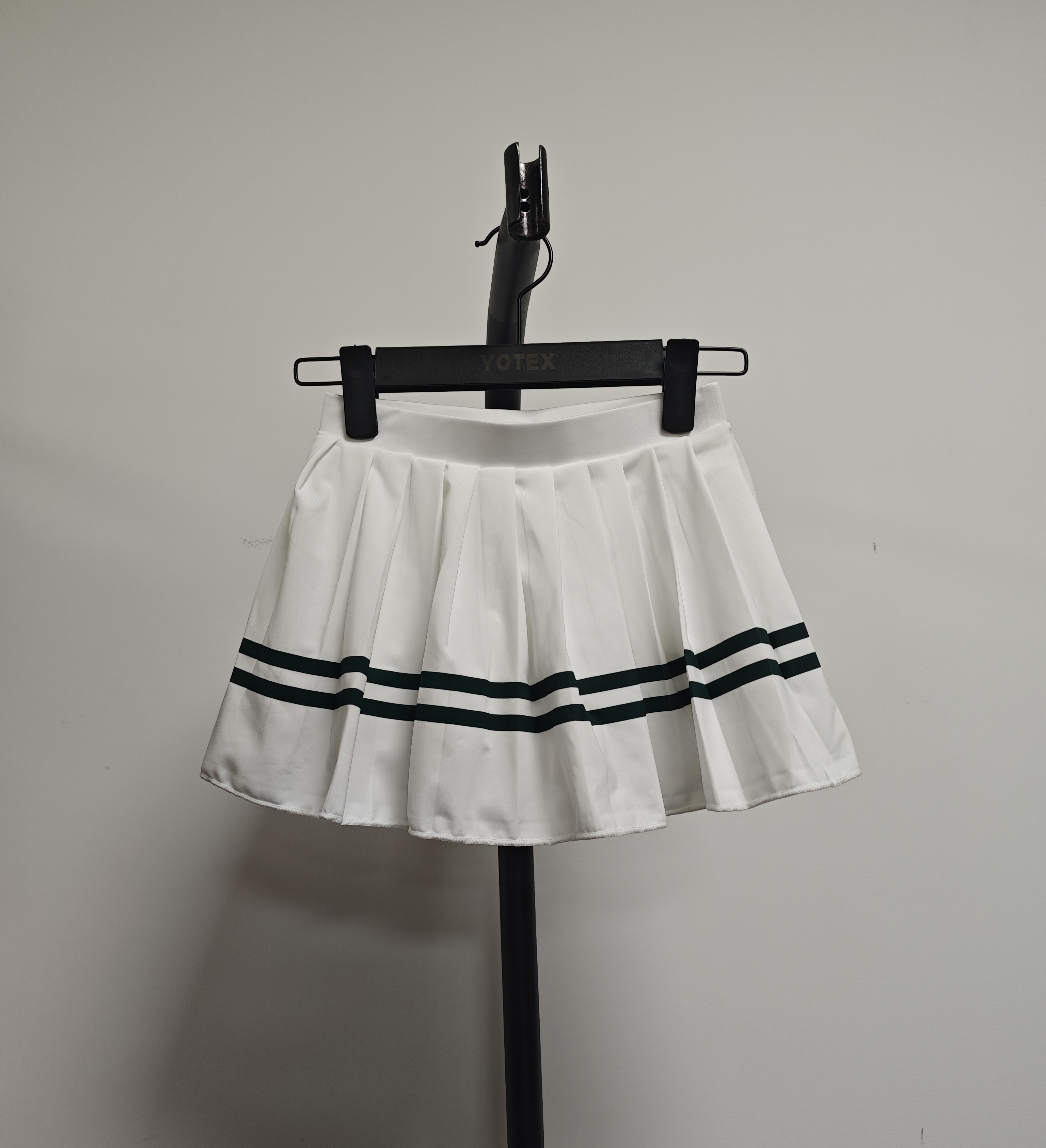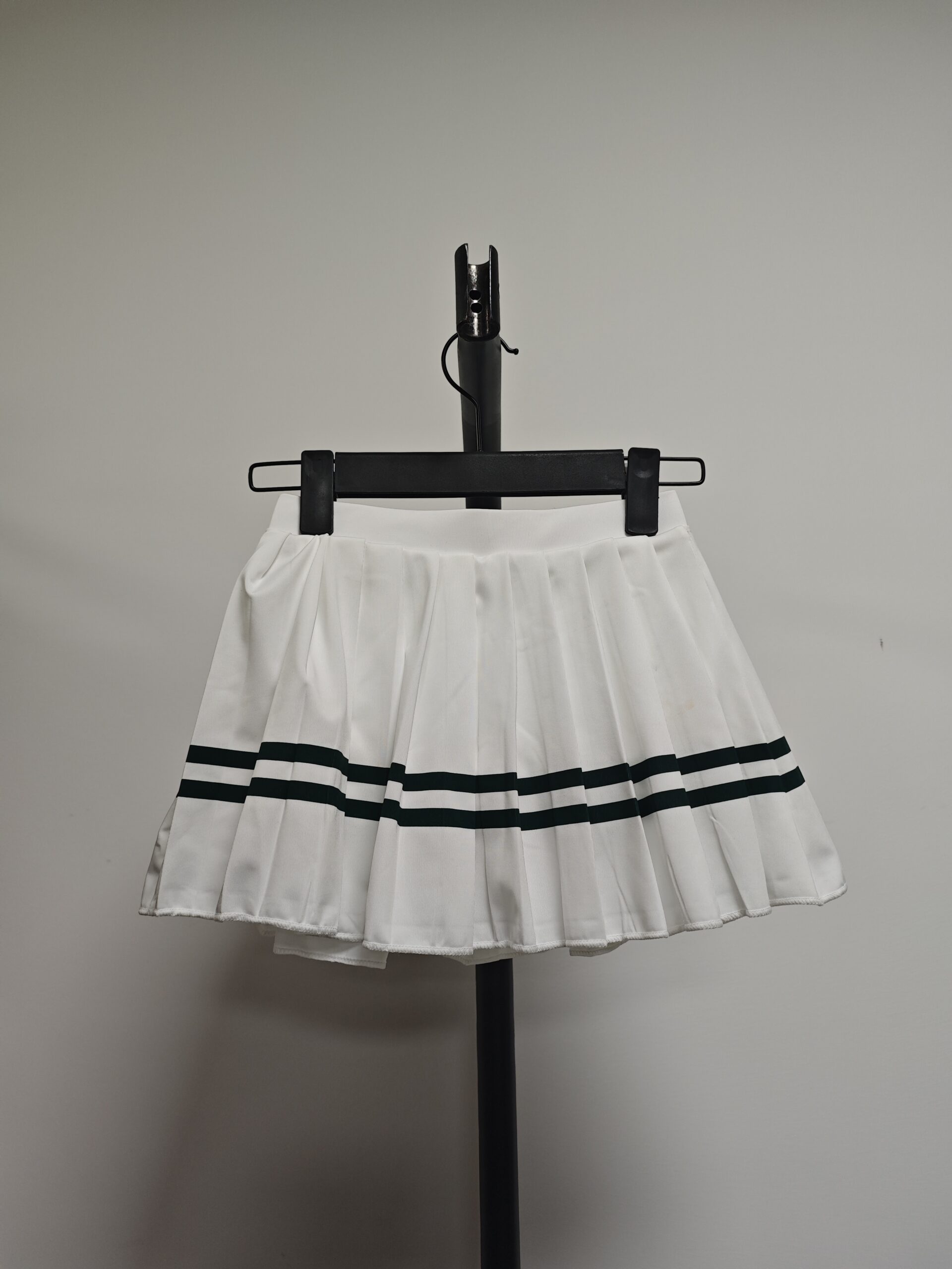 This lightweight skirt features accordion-style side pleats or non pleats and mesh fabric panels on the liner to keep air flowing set after set.